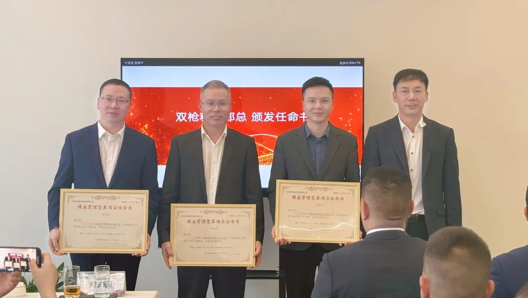 启动会上,项目总监高度肯定了双枪科技在营销、产品及企业文化上的优势,还特别称赞了在龙泉调研时感受到的优质行政服务。他认为制造能力是企业核心竞争力的关键,需从现场、人才、指标、质量四方面衡量。会上,他确立了双方共同经营目标,即经营好生产、产品、团队和体系,并明确通过制定计划、组建小组、定期复盘、确认激励来实现。他强调,精益项目成败关键在于角色认知转变,希望大家树立共同体意识,并肩作战。