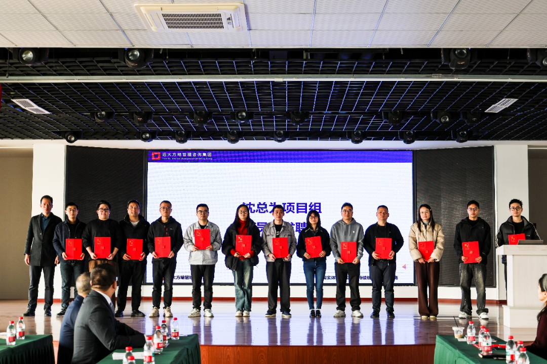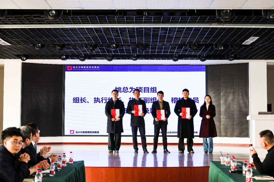 在明确了战略方向和动员令之后,会议上也宣读了此次任命,明确了项目指导委员会、项目管理办公室以及各专项工作组的负责人和核心成员名单。会上,姚总为顾问团队颁发了授权书,为项目组成员颁发了聘书,进一步明确了各岗位职责,坚定了变革的决心。