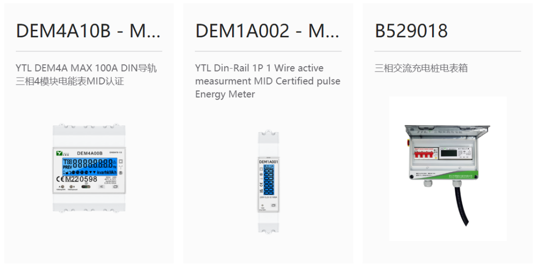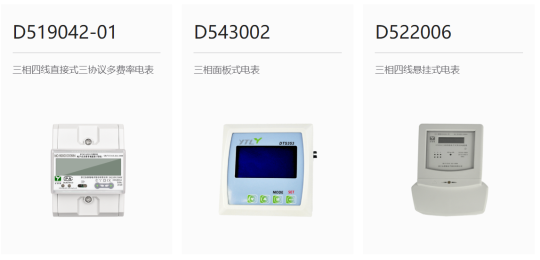 目前公司产品种类已达400多种,电能表功能规格的覆盖面广。产品系列从结构上来分,主要有导轨式、分体式、面板式、吊勾式、插座式、传统式等;覆盖各类通讯方式,包括RF、IR、RS232、RS485、PLC、ZIGBEE、LoRa、蓝牙、以太网、WIFI、NB-IoT、GPRS(2G/4G)/GSM,具备研发、测试和生产单、三相电子式电能表的能力。