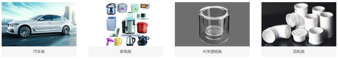 产品范围涉及汽车, 家用电器,办公设备,工业/医疗仪器外壳,包装瓶盖等。公司拥有专业完善的市场,项目,设计团队和先进的加工制造设备。